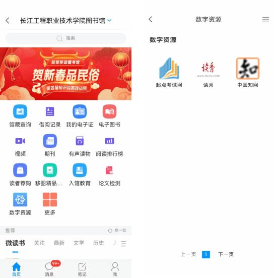 5.超星学习通:手机等移动端登录学习通后,点击学习通首页右上角“邀请码”,输入“cjgytsg”,完成绑定,进入学习通图书馆主页,可在线阅读电子图书、文献传递学术论文和学位论文、论文查重检测(师生每年可免费检测3次,如有多篇检测需求,请联系图书馆)、馆藏纸质图书检索、借阅查询、荐购图书,还可以提供中国知网(首次使用需登录已关联机构的个人账号)、起点考试网(首次使用需登录校园网内注册的个人账号)、读秀知识库(首次使用需登录校园网内认证的个人账号)第三方数字资源跳转链接等(说明:首次使用学习通需绑定读者信息:单位/机构名称长江工程职业技术学院图书馆,借阅证号和初始密码为教工工号/学生学号)。
